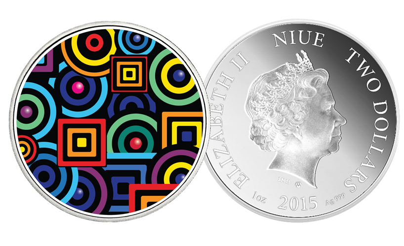 valor nominal, uma imagem da rainha Elizabeth II com a inscrição ‘Elizabeth II’, o nome do país emissor, ‘Niue Island’ e o ano de emissão de 2015.